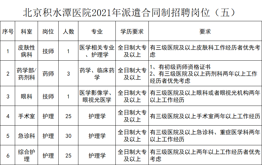 【招聘公告】北京积水潭医院2021年派遣合同制招聘公告(五)