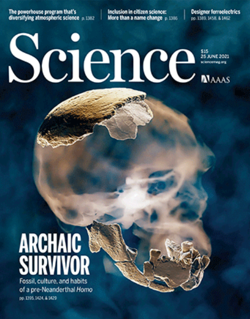 封面:13万年前数字重建的人类头骨。在以色列Nesher Ramla发现的这个以前未被认识的同源群体揭示了尼安德特人的起源和同源血统的进化历史。这个小组的已故成员与智人同时居住在黎凡特地区并与他们互动。